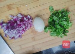 1.筹备洋葱,鸡蛋,香菜切好备用